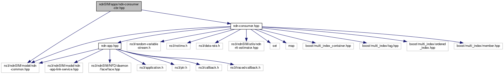 Include dependency graph for ndn-consumer-cbr.hpp: